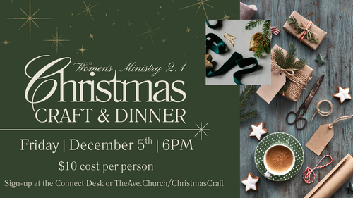 Join us for an evening of food, crafting, and sweet fellowship with other women at The Avenue! Be sure to register so we can have enough supplies for everyone. See you there!